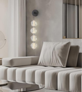 To illustrate the intersection of practical lighting and artistic form, one needs to look no further than the Cobblestone Series by Kinglong Lighting. Specifically, the Cobblestone Acrylic 4Lt Wall Lamp exemplifies how modern materials can reimagine traditional forms. Inspired by the organic elegance of river stones smoothed by water, this fixture moves away from rigid geometric lines, introducing softness to vertical surfaces. The choice of material is particularly noteworthy: instead of traditional glass, Kinglong Lighting utilizes high-grade optical acrylic. This material offers the transparency and refractive qualities of crystal but with significantly higher durability and impact resistance—a crucial factor for wall mounting lamps in high-traffic areas like hotel corridors or public lobbies. The Cobblestone Acrylic 4Lt Wall Lamp features four distinct light sources, ensuring a generous light output that is decorative yet functional. The acrylic “stones” capture the light from the integrated LEDs, glowing from within and casting a sophisticated play of light and shadow on the surrounding wall. This fixture is not merely a light source; it is an art installation that functions effectively as one of the best wall lamps for living room accent walls or hallway sequences.