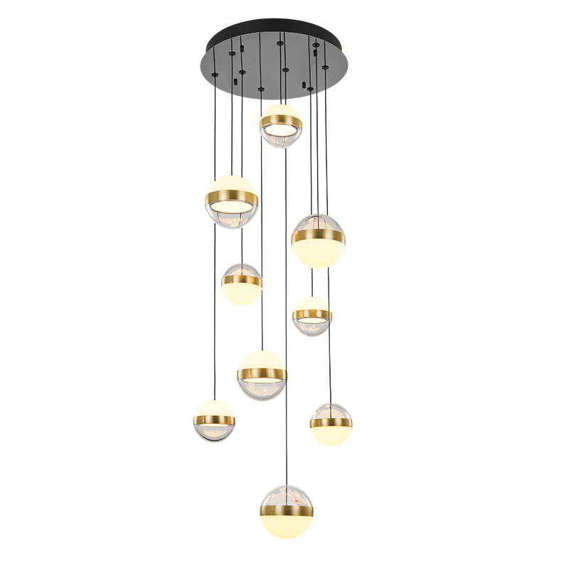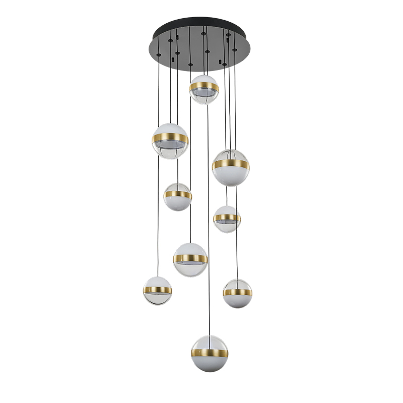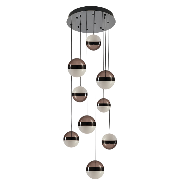 Bringing elegance and warmth to any interior, the Atomo II nine-lights ceiling fixture draws inspiration from the timeless spherical form. Each of the three pendant heads features a crystal-clear acrylic outer shell paired with a milky white inner diffuser, casting a soft, ambient glow that adds romance and tranquility to bedrooms, living rooms, or any cozy setting. With a clean, symmetrical design anchored by a round ceiling plate, the fixture blends modern aesthetics with functional versatility. Each globe has a diameter of 12 cm, and the suspension height is fully adjustable, allowing for personalized arrangement to suit different room heights and styling preferences.
